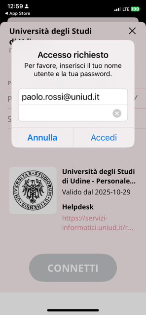 Installazione eduroam per iPhone - Personale UNIUD